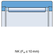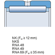 通常涉及為單列軸承,RNA 69 和 NA 69 系列的 D ≥ 52 mm (Fw ≥ 40 mm) 雙列軸承除外