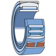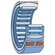 SKF 調心滾針軸承的軸承外圓為凸球面形的設計。 配合外圓凹球面形設計的兩個聚合物座圈組合在沖壓鋼圈內并安裝在外圈上。